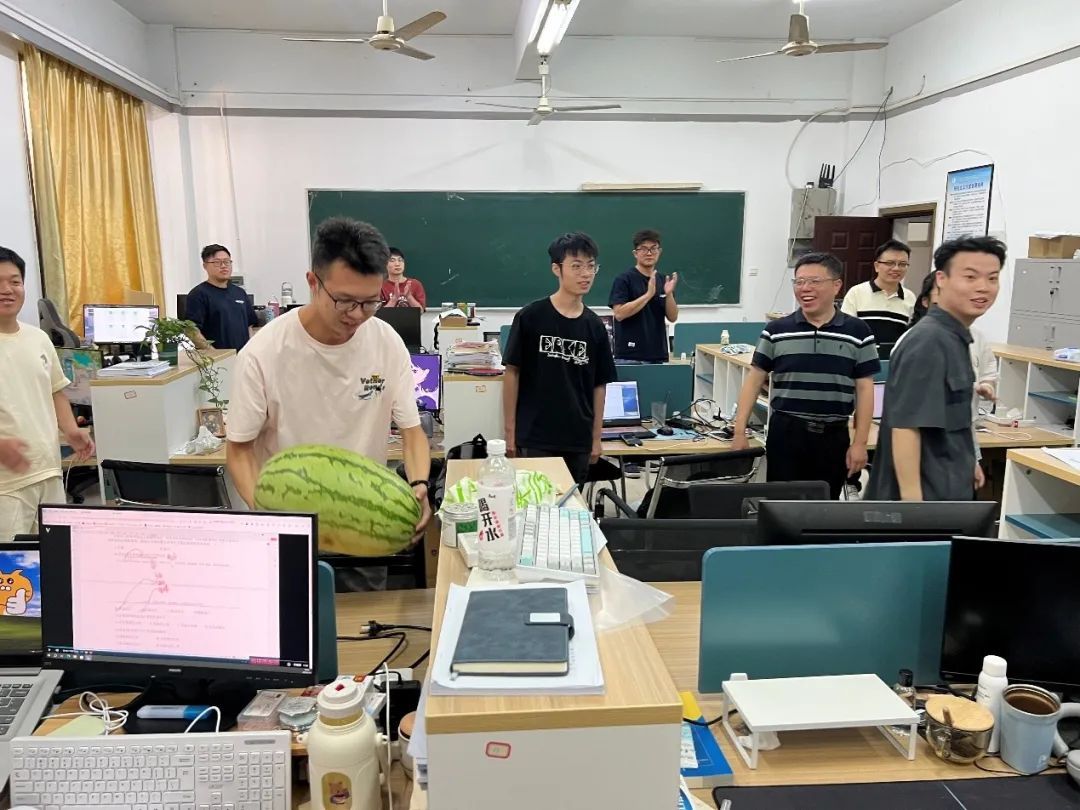 肖乾副董事长一行将满载关怀的清凉水果送到留校研究生代表手中,并与同学们亲切交流,详细了解暑期学习计划与科研进展,重点询问课题安排、阶段性成果及实际困难,勉励大家充分利用暑期在校时间,夯实理论基础,深耕课题,力争发表高水平论文。同时再三强调务必守牢安全底线:实验室、宿舍做到人走断电,杜绝违规用电;严格执行早点名、晚查寝、外出报告制度;提升防溺水、防诈骗意识,时刻注意人身与财产安全。