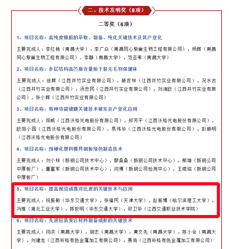 7月8日,江西省人民政府公布《江西省人民政府关于2019年度江西省科学技术奖励的决定》,对2019年度为全省科学技术进步、经济社会发展作出重要贡献的科技工作者和组织给予奖励。其中,以公司祝振敏博士、陈世明教授为主要完成人的“提高视觉成像对比度的关键技术与应用”项目荣获2019年度江西省技术发明二等奖。