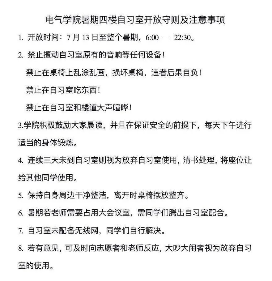 为给留校备战的同学们更好的学习环境,公司特将电气楼大会议室和410作为考研专用自习室,提供给留校的大三员工。并专门制定了《bevictor伟德暑期四楼自习室开放守则及注意事项》,严格控制自习室的学习环境,除此之外,办公室每天都有老师值班,预防突发情况,给同学们提供最大的安全保障。