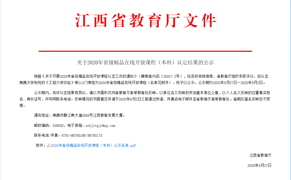 根据省教育厅《关于开展2020年省级精品在线开放课程认定工作的通知》,经各校申报推荐,省教育厅组织专家评议与公示,伟德国际体育官网入选江西省省级精品在线开放课程十二门,其中bevictor伟德张建辉、曾建军和胡文华等主讲的《电机学》成功入选。