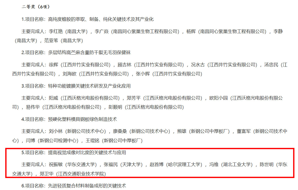 9月3日省委、省政府召开全省科学技术奖励大会,隆重表彰为我省科技事业和经济社会发展作出突出贡献的科技工作者。会议表彰了2019年度江西省科学技术奖。我校喜获丰硕成果,共获奖励6项,其中以公司祝振敏副经理等为主要完成人的“提高视觉成像对比度的关键技术与应用”项目荣获2019年度江西省技术发明二等奖。