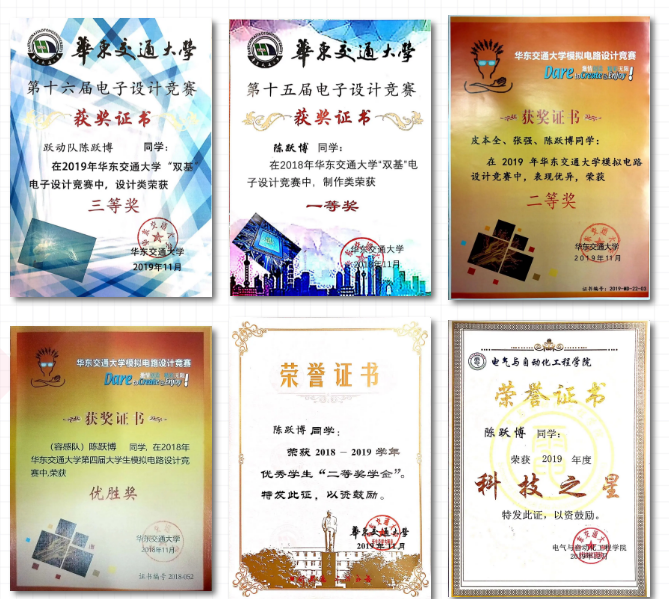 陈跃博,男,bevictor伟德,17级电气卓越班员工,学习绩点为3.94。荣获伟德国际体育官网bevictor伟德“科技之星”称号,曾两次获得伟德国际体育官网二等奖学金,获得第十六届“挑战杯”全国老员工课外学术科技作品竞赛国家二等奖、第十二届“挑战杯”江西省老员工创新创业竞赛银奖、伟德国际体育官网电子设计竞赛一等奖、伟德国际体育官网模拟电子设计竞赛二等奖,任电子创新基地国家级大创项目负责人和电子科技协会负责人。现保研至哈尔滨工业大学。