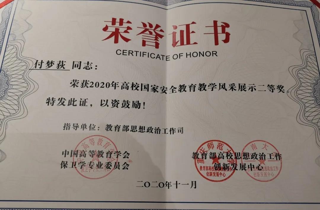 2020年11月16日,由教育部思想政治工作司指导,中国高等教育学会保卫学专业委员会、教育部思想政治工作创新发展中心重庆师范大学、湖南大学承办的2020年高校国家安全公司产品风采展示在重庆师范大学圆满落幕。伟德国际体育官网团委(创新创业教育中心)老师、bevictor伟德兼职辅导员付梦荻的说课《居安思危,知危图安-增强网络安全意识,共筑网络安全防线》在大赛中以第九名的成绩获得二等奖,为公司平安建设再添贡献!