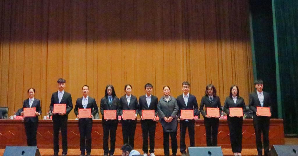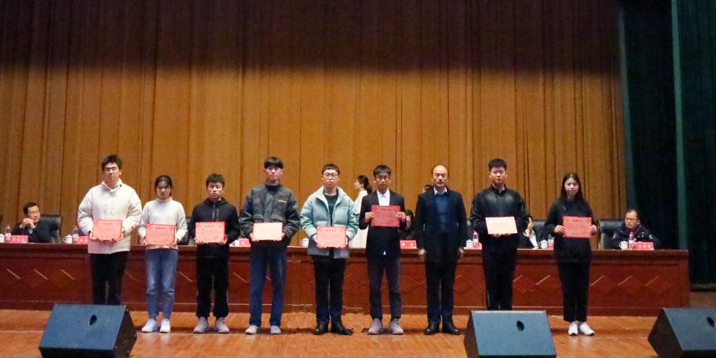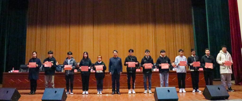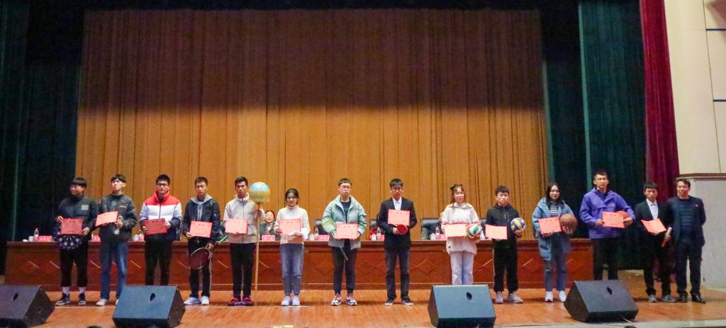 会议伊始,徐雪松宣读了关于表彰2020年度优秀体育集体及个人的决定,赵敏向捐赠方代表陈志武颁发捐赠证书,并对季礼等10名“十佳运动员”荣誉称号获得者进行颁奖,陈志武对刘玉等11名“体育奖学金”获得者颁奖并合影留念。大会同时授予田径队等8个运动队“体育先进集体”荣誉称号,符聪等20名同学“优秀运动员”荣誉称号,方宏飞等12名同学“优秀体育工作者”荣誉称号,左健等6名老师“优秀指导老师”荣誉称号,王健乐等11名同学“优秀教练员”荣誉称号,男子篮球队等4个运动队“团体贡献奖”,院员工会等8个集体“最佳组织奖”。