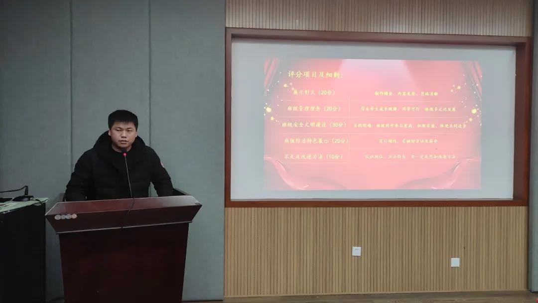 17电气卓越班从班级组织建设、班级团建活动、宿舍制度建设三个方面对班级综治工作展开铺述,18建电1班则以班级建设工作为平台,突出“不博今日何建树,唯有美德乃风流”的优良班风,充分展现了班级的精神风貌。“任务确保落实,安全责任细化,紧紧跟随校、院脚步,积极主动发现问题、解决问题。”17电力2班的发言人在述职报告中的总结获得全场一致好评。