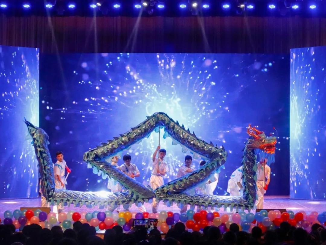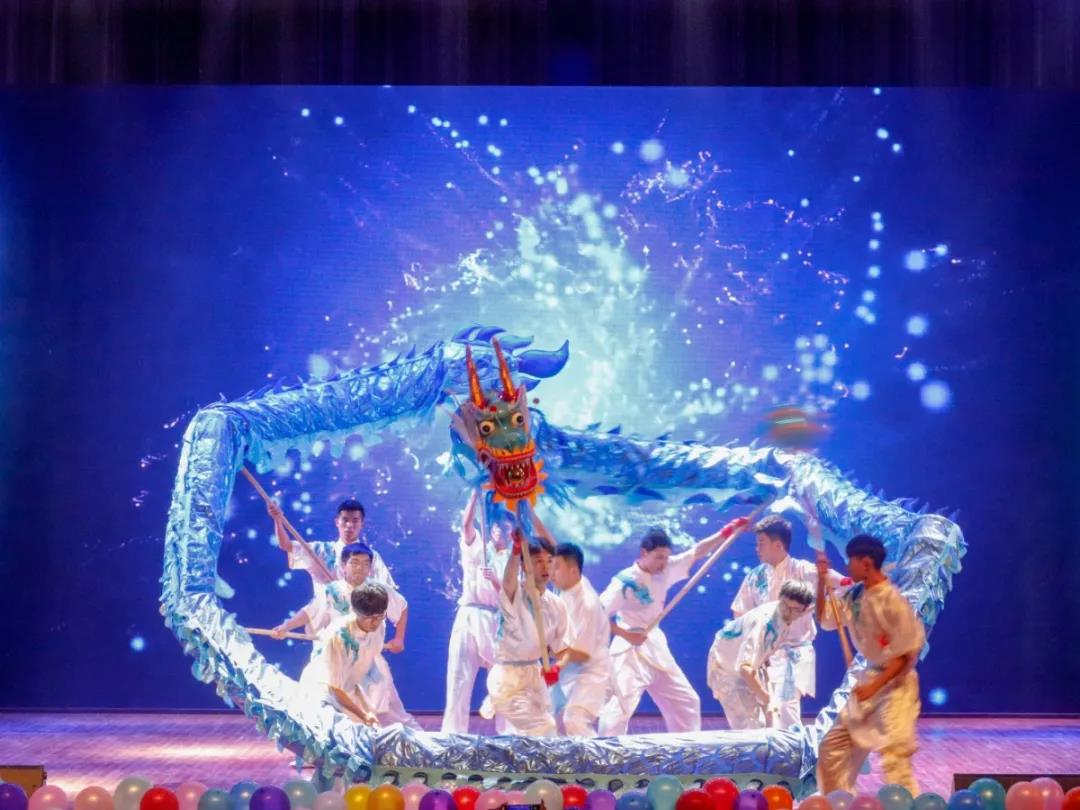 “翩若惊鸿,婉若游龙,荣曜秋菊,华茂青松”巨龙追随着蓝色的龙珠飞腾跳跃,忽而高耸似直冲云端,忽而低下如潜入海底,蜿蜒腾挪,意味无穷。电气学子们,就如同这条巨龙一般,努力奋斗,不负韶华;龙观沧海,福瑞八方!