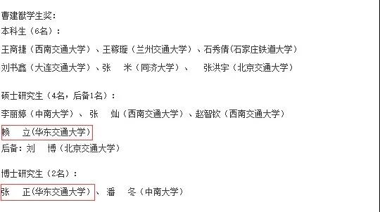 按照《曹建猷铁道牵引电气化与自动化科技教育基金会章程》规定,根据《关于开展2021年曹建猷教育奖和曹建猷员工奖评选工作的通知》要求,经个人申请、各高校审核、评委评审,公司硕士研究生赖立、博士研究生张正获2021年“曹建猷员工奖”。