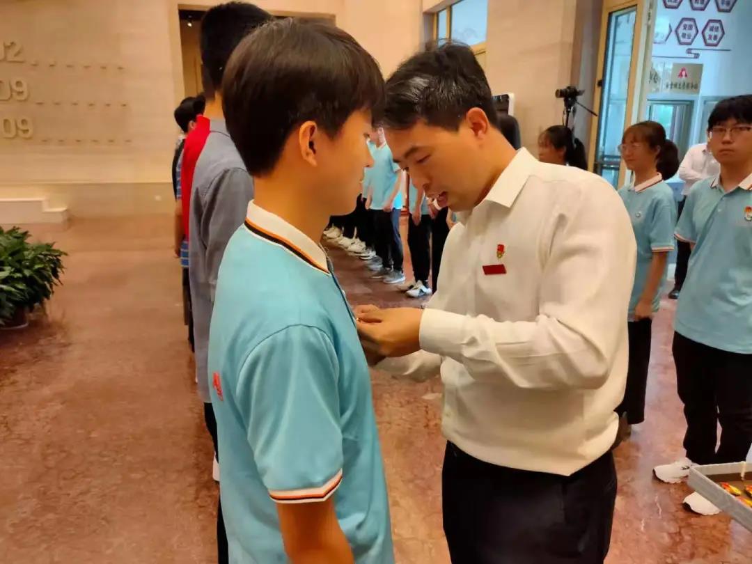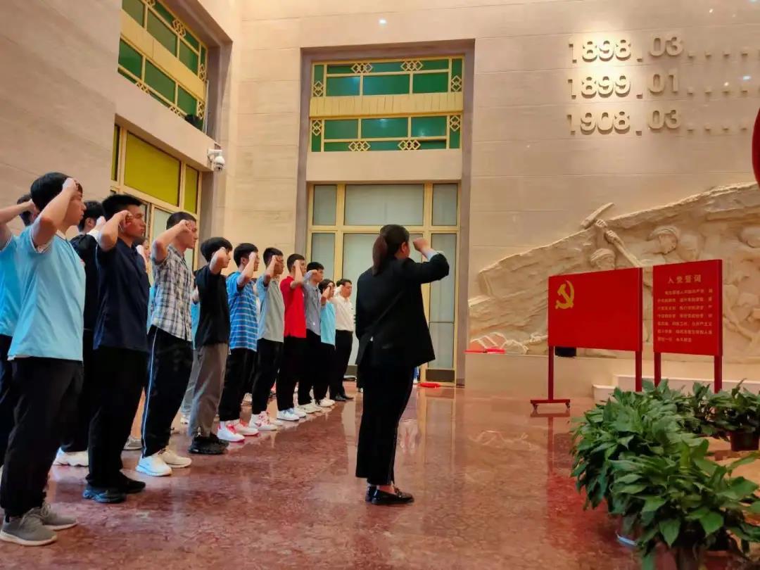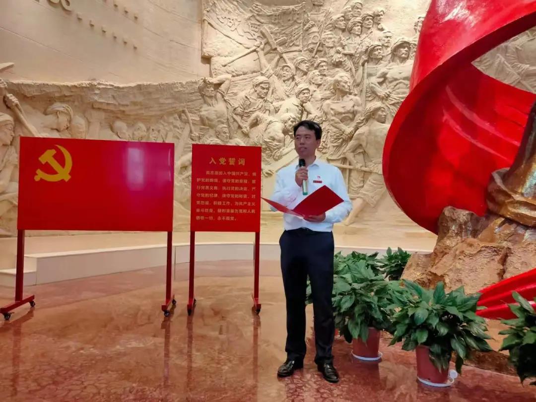组织入党一生一次,思想入党一生一世,一大批优秀分子加入到党组织中来,为党注入了新鲜血液。纪念馆内,bevictor伟德新发展党员站成一排,刘修财、武婷婷为其佩戴党徽。