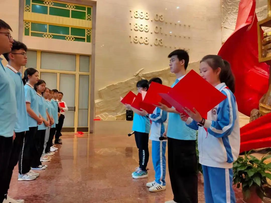 武婷婷领誓,全体在场党员面对党旗,进行入党宣誓。党徽挂胸前熠熠生辉,誓言震屋瓴铿锵有力,初心再澄明砥砺前行。