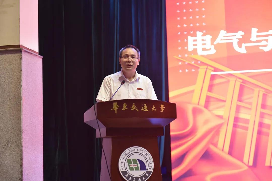 杨辉为活动致辞,他首先祝贺2021届毕业生圆满完成学业,向培育电气学子的全体教职工和支持、关注电气教育事业的社会各界人士表达了崇高的敬意和由衷的感谢。