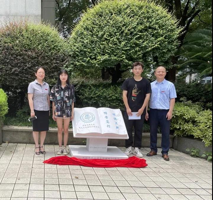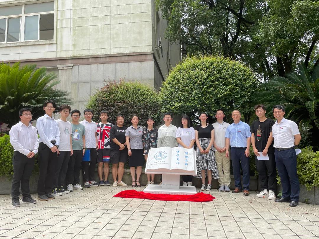 院领导与卓越班同学代表进行揭幕,并与全体同学合影留念。拳拳赤子心,滴滴似水恩。这块石雕传递着他们对母校养育之情的感怀,对恩师奉献之情的感念,是他们饮水思源,感恩公司,祝福母校的心声。