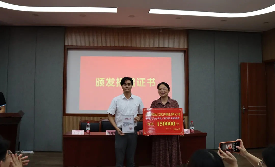 会议最后,赵敏代表公司向初远文化传播有限公司颁发了《捐赠证书》,在与会人员的热烈掌声中双方合影留念。