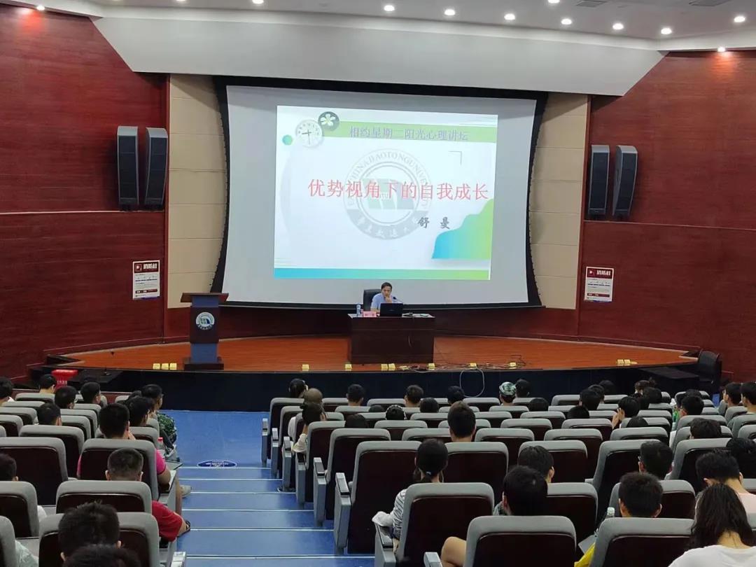 微风徐徐,秋意渐浓。为使公司新生能够以积极向上的心态面对生活,在大学中发掘自身潜力,发挥个人优势,10月9日晚,在北区图书馆圆形报告厅内,公司2021级电子信息工程专业全体新生参加了舒曼老师的“优势视角下的自我成长”心理讲座。