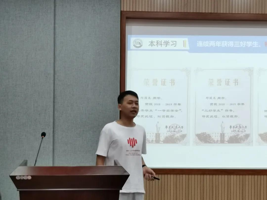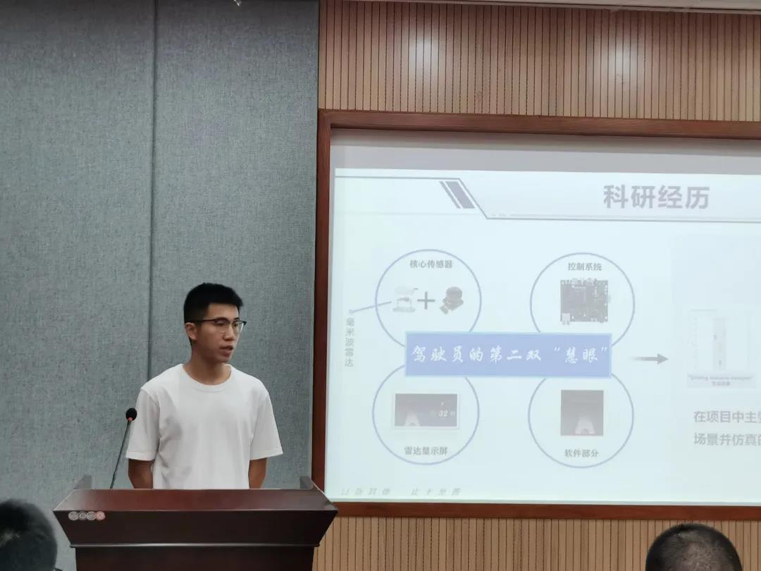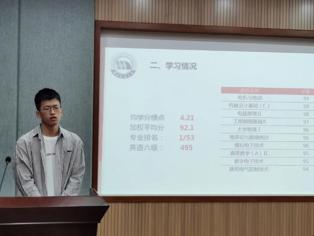 在主持人宣读完答辩要求和评审规则后,答辩评审会正式开始。短短五分钟的时间,参加答辩的同学通过PPT展示依次从学习成绩、员工工作、科创经历和综合素质等不同方面进行个人介绍和业绩陈述,并对未来的发展做出了规划和展望。