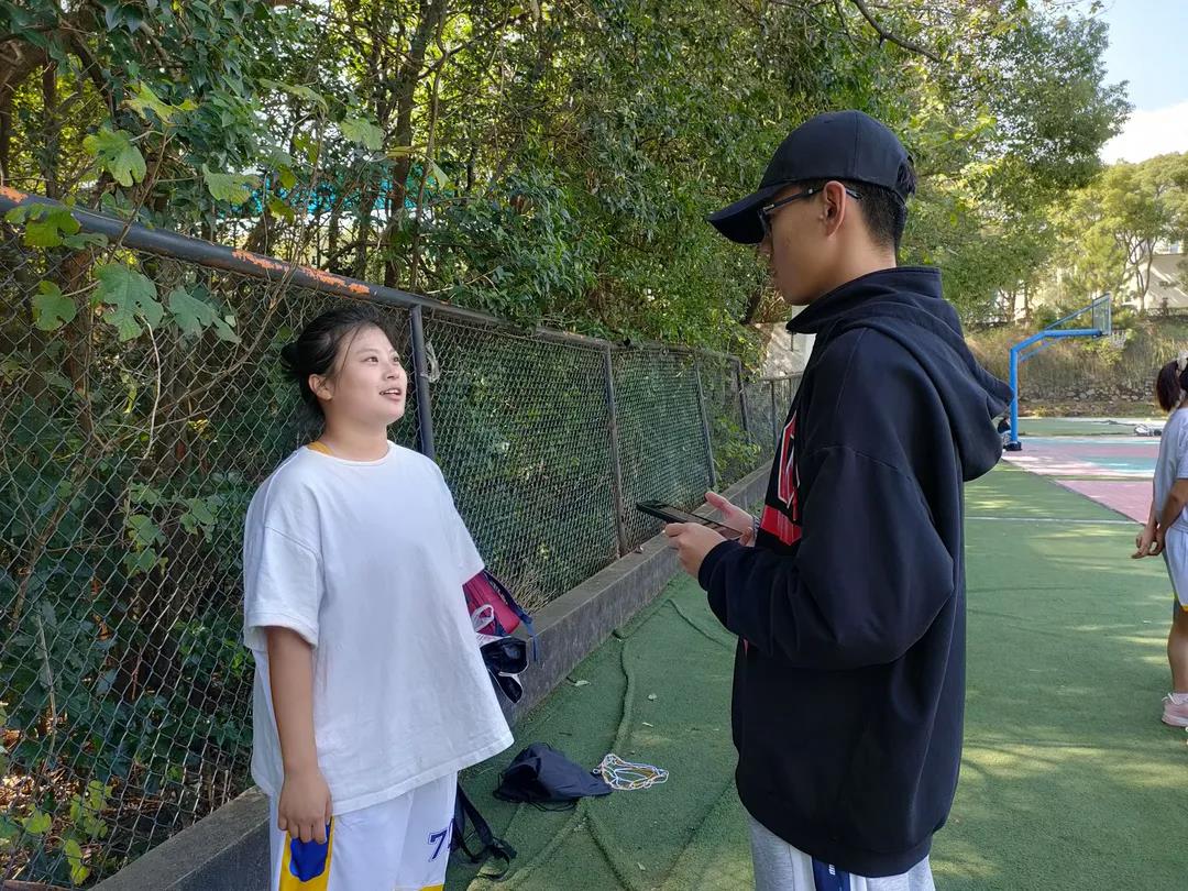 女篮队员孟诗琪:“去年校运会我们的成绩并不理想,后续我们会更加刻苦训练,争取在下一次比赛中取得好成绩。同时也希望有更多新成员加入我们,共同融入篮球队这个大家庭。”