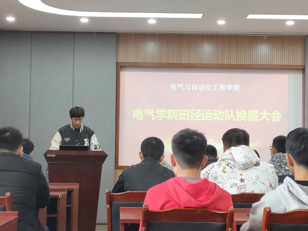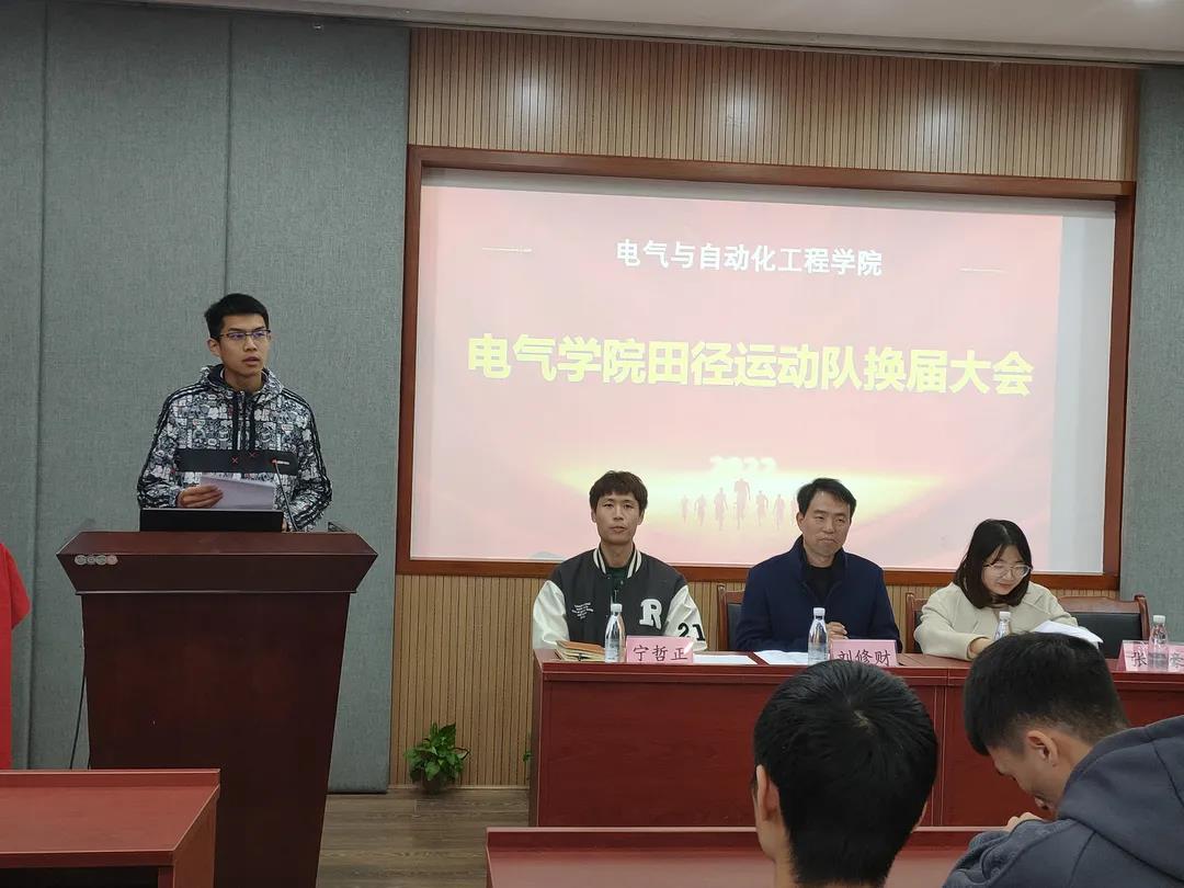 刘修财宣布杨晢将担任第十二届田径队队长,杨晨雨、吴俊成、陈晨、崔文泽、袁志成担任副队长。并由文涛为上一届田径队负责人颁发聘书,举行新老队长换届交接仪式。新老队长交接代表田径队的接力棒,场下响起激烈的掌声。