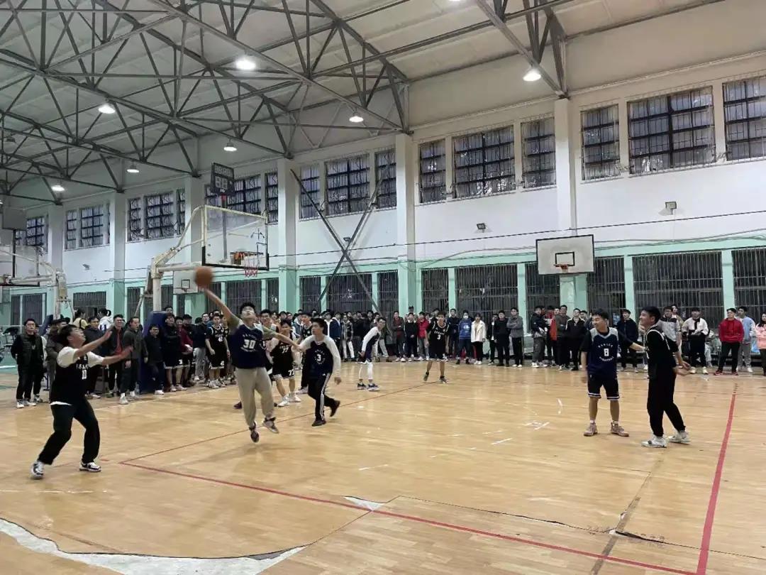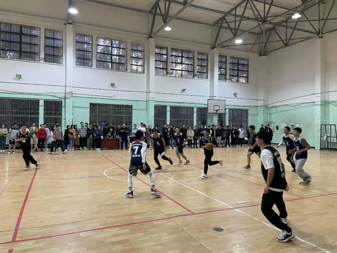 随着一声哨响,研一篮球队和研二篮球队精彩的男子对抗赛正式拉开帷幕,双方运动员迅速投入比赛,每个队员都拼搏进取、冲锋不断,尽显青春风采。观众席的师生们也热情高涨,纷纷为队员们加油鼓劲,赛场气氛瞬间攀升。