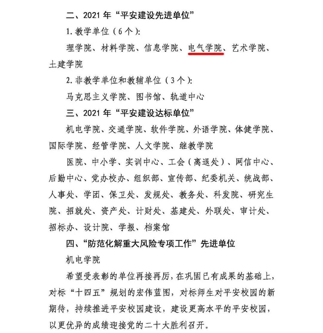 根据《关于开展2021年平安建设考评的通知》和考评情况,经校综治办审核、公司党委会研究,决定授予公司“平安单位”及2021年“平安建设先进单位”。