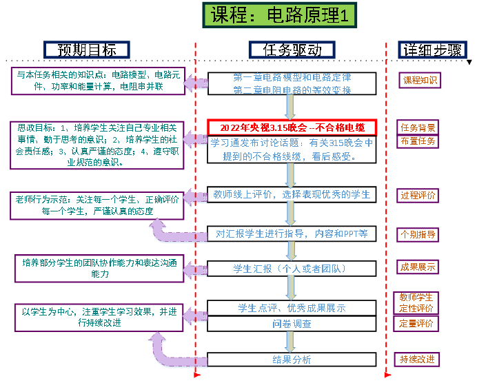 《电路原理I》课程通过采用任务驱动的方式,课前发布寻找“3.15晚会曝光的不合格电缆问题”的任务,激起一年级同学对专业学习的欲望。