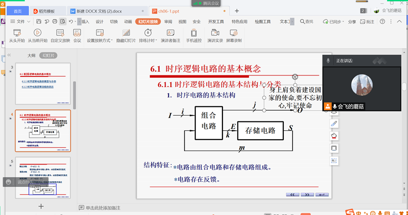 《数字电子基础》讲述组合逻辑电路的存储记忆功能,提醒员工要珍惜生命、不忘初心,肩负起建设国家的使命。在分析与设计时序逻辑电路时, 器件选择不同,设计出来的电路就不同,有的选择设计容易,有的选择设计困难,最终都是完成相同的功能。同学们虽然选择的公司不同、专业不同,但最终的目标都是一样的,都应该激励自己,使自己成为对社会有用的人。