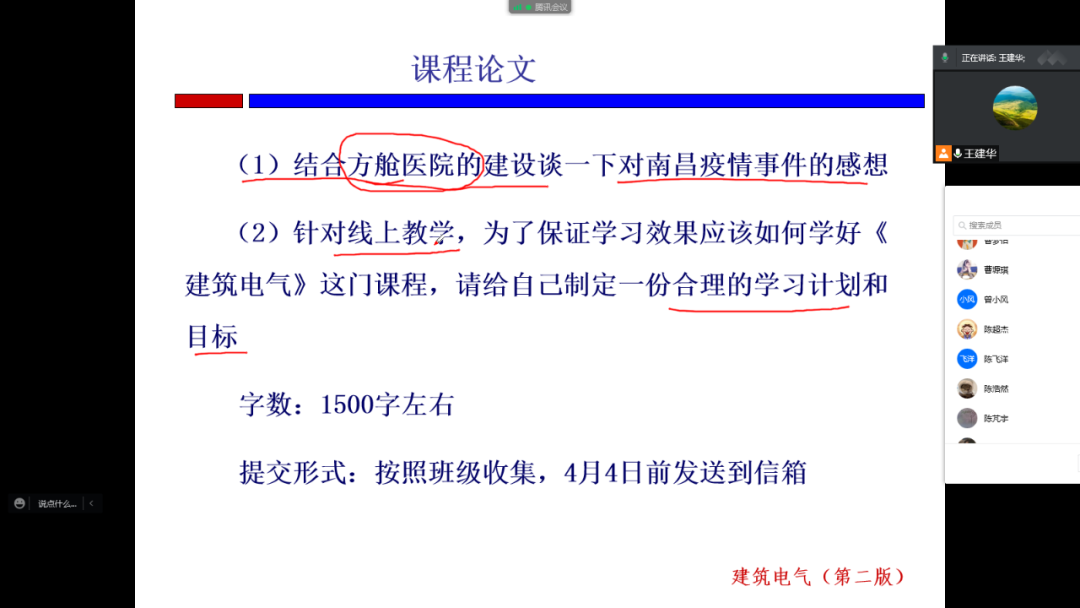《建筑电气(A)》的课堂上,老师在为同学们讲述电线电缆,高低压电气设备的计算和选择时,通过列举方舱医院的建设,鼓励同学们努力学习专业知识,学习前辈们的精益求精的工匠精神,夯实自己的专业本领,从而为社会的建设添砖加瓦,贡献自己的一份微薄力量。