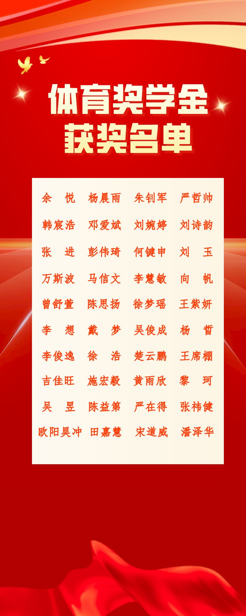 为表彰体育方面突出、为公司争光的优秀同学,公司特此进行体育奖学金的评定。奖学金评定者需具有良好的道德品质和行为习惯,积极参与公司和公司组织的各项体育活动,为公司的体育事业做出贡献,并在本学年校运会期间,个人单项赛事位列前八或所在队伍在团体赛事中位列前三,且学习刻苦、成绩优异,无挂科、重修。现将公司"体育奖学金"获得者名单进行公布。