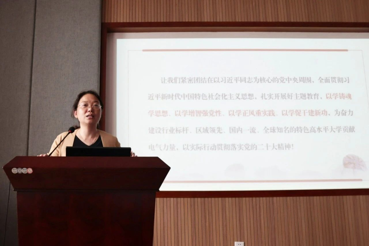 赵敏强调,全体党员、干部要紧密团结在以习近平同志为核心的党中央周围,扎实开展好主题教育,以学铸魂学思想、以学增智强党性、以学正风重实践、以学促干建新功,为公司奋力建设成为行业标杆、区域领先、国内一流、全球知名的特色高水平大学贡献电气力量,以实际行动贯彻落实党的二十大精神。