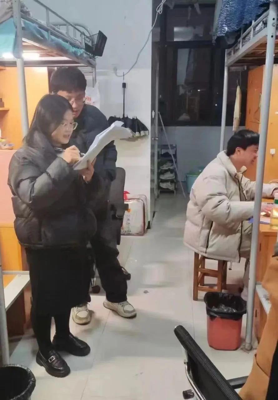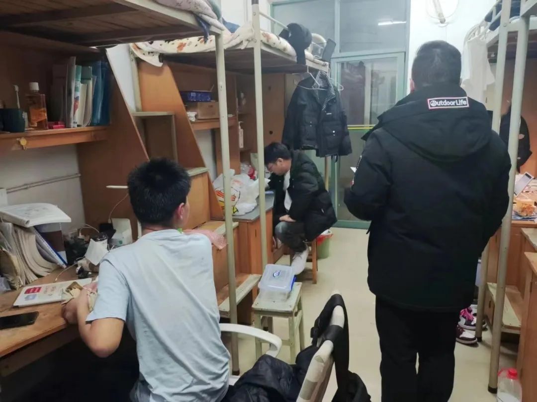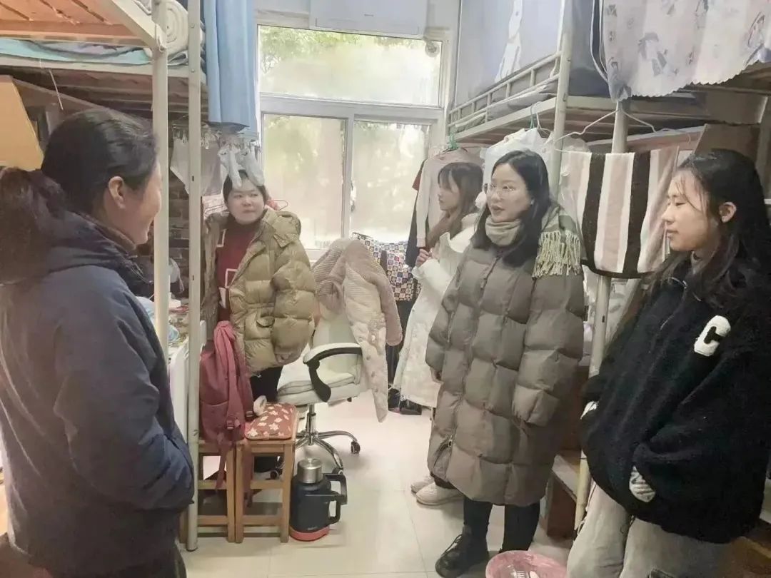 辅导员老师们与同学们亲切交流,解决同学们遇到的困难,督促同学们打扫宿舍,共同营造良好的宿舍环境, 树立宿舍安全意识,加强宿舍安全管理。