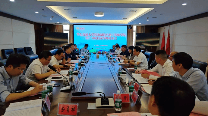 参观学习后,校企双方进行了座谈交流。崇仁县企业负责人对各自企业的发展历程、生产工艺、设备设施及其在行业领域中的技术优势等作了详细介绍,电力牵引教工党支部介绍了公司电力牵引专业的发展现状和未来规划。双方就校企合作、人才培养、科技创新等方面进行了深入探讨,确定了以企业实际技术需求为导向设置培养方向,构建产学研贯通的培养路径。