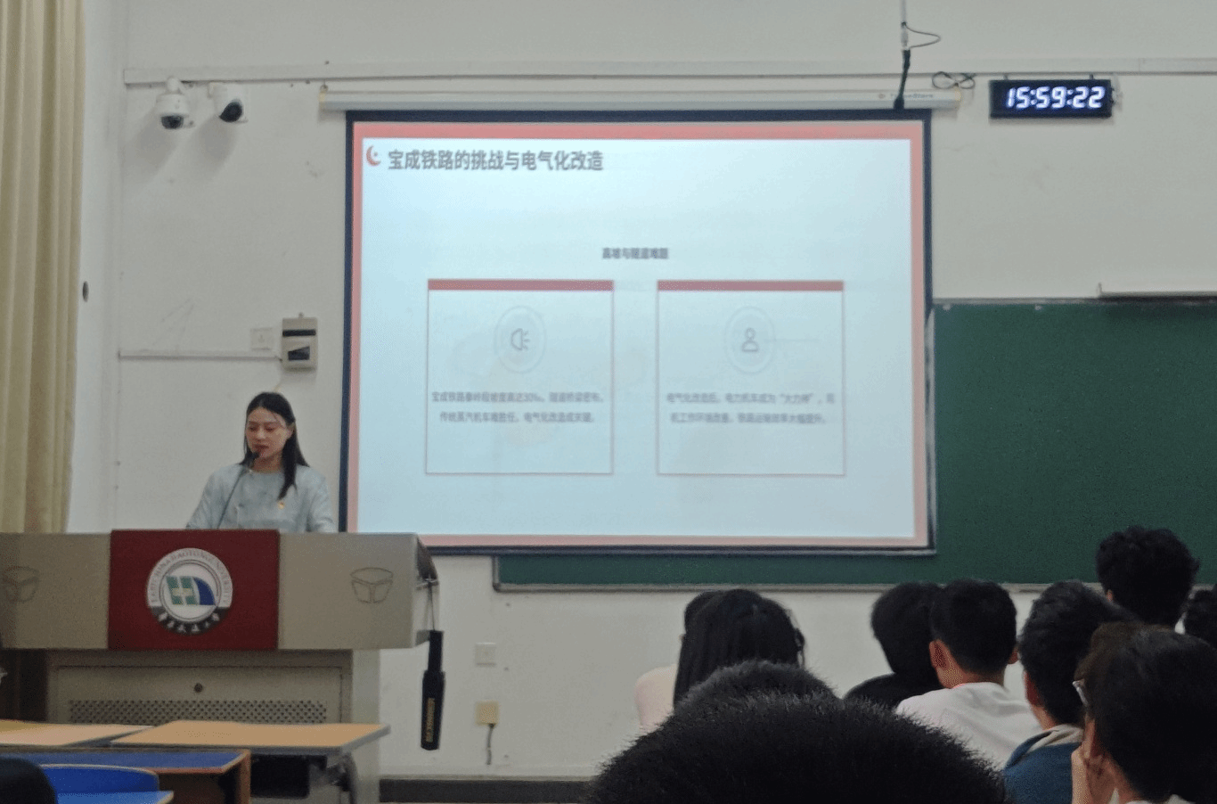 为传承和弘扬“红色铁路精神”,让同学们深入了解新中国第一代电力机车女司机的奋斗历程,从历史机遇、成长蜕变、职业荣光到精神传承,展现铁路女性突破性别壁垒的红色传奇。5月15日,bevictor伟德“红色电磁场”宣讲团成员董雨晴老师在逸夫楼开展了“讲好红色铁路故事,赓续红色铁路基因”主题宣讲。