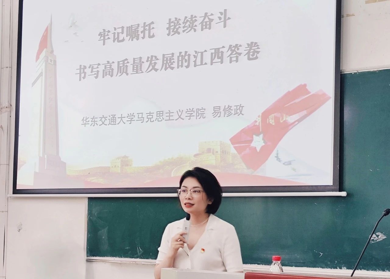 易修政老师从习近平总书记与江西的故事、理解贯彻习近平总书记对江西工作的重要要求、奋力谱写中国式现代化江西篇章三个方面介绍了习近平总书记考察江西的情况。