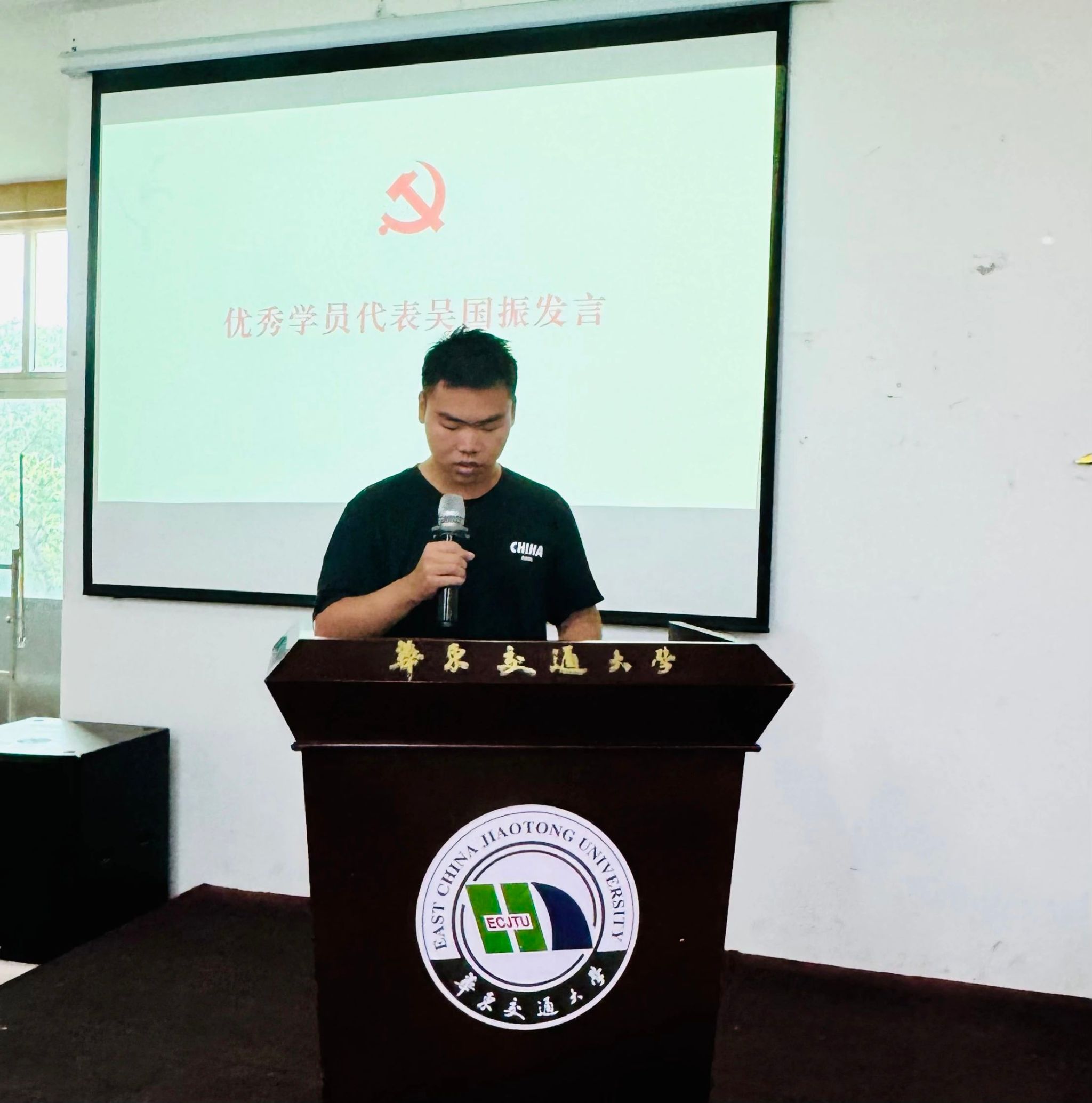 优秀学员代表吴国振同学发言,他分享了此次党课培训学习期间的感悟和收获,并代表全体学员,向辛勤培育他们的公司、公司和无私奉献的老师们致以敬意和感谢!他郑重表态:“我们以此次党课结业为起点,把课堂里的理论认知转化为冲锋的号角,把实践中的红色基因化作前行的动力,以“请党放心,强国有我”的铿锵誓言,书写属于我们这代人的青春华章!”