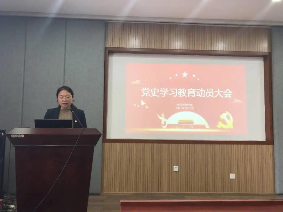她指出,本次学习要紧紧围绕习近平总书记在党史学习教育动员大会上的讲话精神,习近平总书记在庆祝建党一百周年大会上的重要讲话以及习近平总书记在党史学习教育总结大会上的讲话精神展开,内容涵盖中国共产党百年奋斗的光辉历程,伟大贡献,初心宗旨,理论成果,伟大精神和宝贵经验六个方面。在整个学习过程中,党员同志要发挥好模范带头作用。教工党员要将所学所感融入到教学中来,给员工起好带头作用,做到立德树人。员工党员则要将所学所悟带到平常的生活中来,在学习、科研等各方面发挥好带头作用,真正做到学党史、悟思想、办实事、开新局。