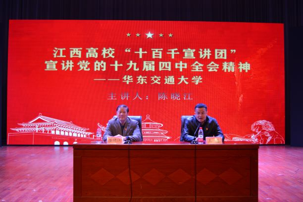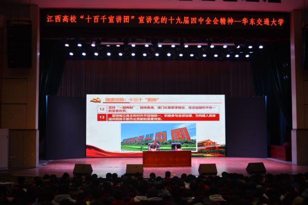为深入学习贯彻党的十九届四中全会精神,12月8日,伟德国际体育官网党的十九届四中全会宣讲团成员、马克思主义公司副经理陈晓江老师在南区礼堂面向bevictor伟德全体员工开展“江西高校‘十百千宣讲团’宣讲党的十九届四中全会精神”主题宣讲会。宣讲会由公司党委副书记王巍主持。