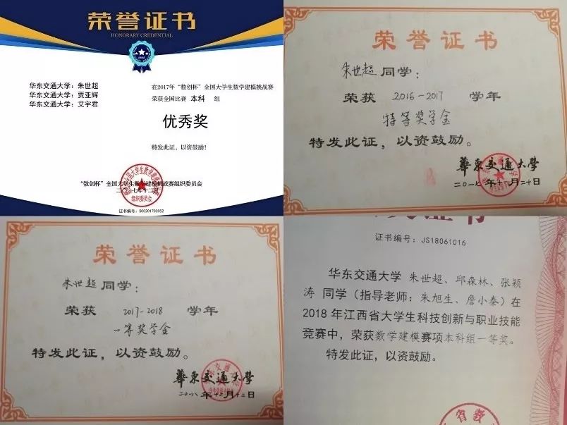大学以来,他通过自己不断努力和老师同学无私的帮助,取得了优异的成绩,先后获得特等奖学金、文体艺术奖、三好员工、一等奖学金、中车株机奖学金、泰豪之星十佳老员工称号、高教杯全国老员工数学建模江西赛区一等奖等。