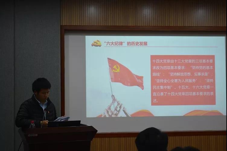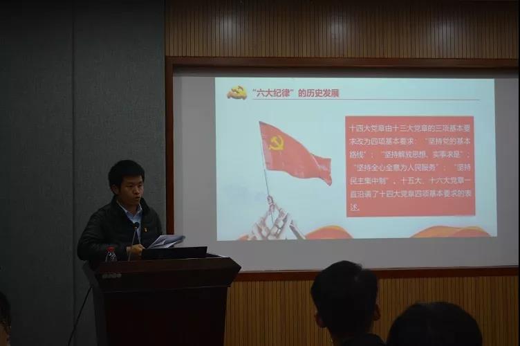 11月20日,伟德国际体育官网纪委纪检员宋贤东在电气楼403教室为bevictor伟德分党校第39期党课培训班讲授以“重走党纪发展道路,解读党的六大纪律”为主题的党课。