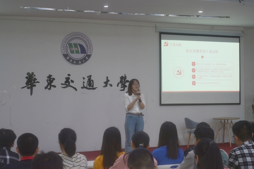 铁道电气化员工党支部的吴世晟同志以分享“如何做好一份简介的PPT”的技巧与心得为契机,向在座的同学们分享规划化的重要性;轨道交通信号与控制员工党支部重温入党流程,宣读入党申请书,讲解党的纪律处分条例;电力牵引员工党支部用自身视角讲述家乡变化,看改革开放以来的总体时代变迁……