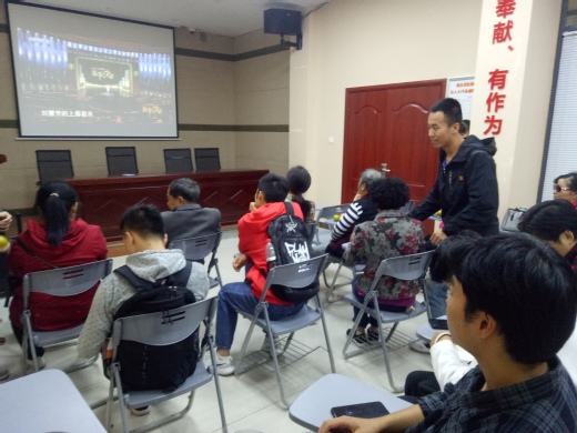 电力牵引员工党支部员工党员、院青协成员与社区老人一同观看了由胡歌和刘涛演绎的《永不消逝的电波》,这个节目是根据真实故事改编而成,主要讲述的是优秀的共产党员李侠(人物原型为李白)为传递重要情报选择牺牲自己的生命的故事。