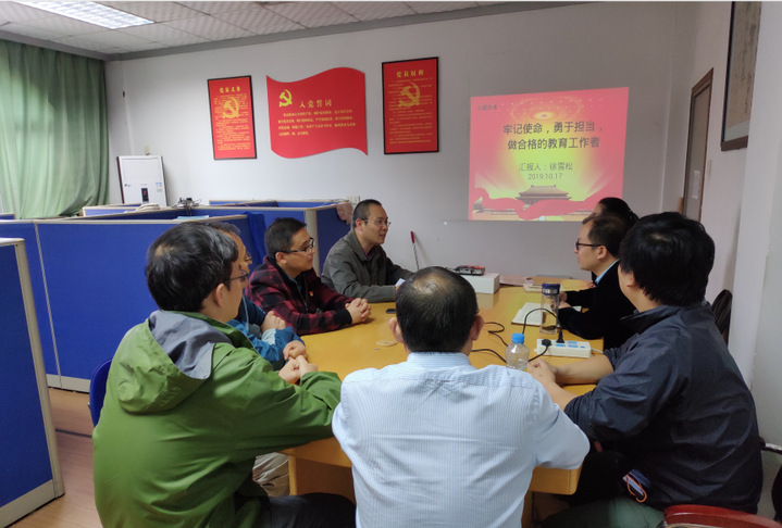 最后,徐雪松向在座的教职工党员们汇报了目前公司双一流的调研情况,他说,公司的团队建设、专业建设、工程认证工作均在按部就班向前推进,整体态势良好的同时,也发现了一些突出的问题,针对这些问题,他同与会人员商讨出了相应的解决思路。他表示,教职工党员要在日常的工作中“找差距、抓落实”,发现自己在工作中存在的不足之处并进行改进和完善,教工党员们要用扎实的知识功底、过硬的教学能力、勤勉的教学态度,肩负起立德树人的使命,为新时代中国特色社会主义培养德智体美劳全方面发展的合格接班人。