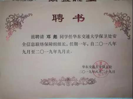邓彪,男,中共预备党员,曾任校保卫处安联组组长、班级学习委员,是自动化员工党支部的一员。他是在学习上积极进取、奋发图强的探索者,他是以实际行动践行服务的志愿服务者,理论结合实践的行动派;他更是一名中共预备党员,党员先锋精神的执行者,在学术科研、员工工作、志愿服务等多方面表现突出。