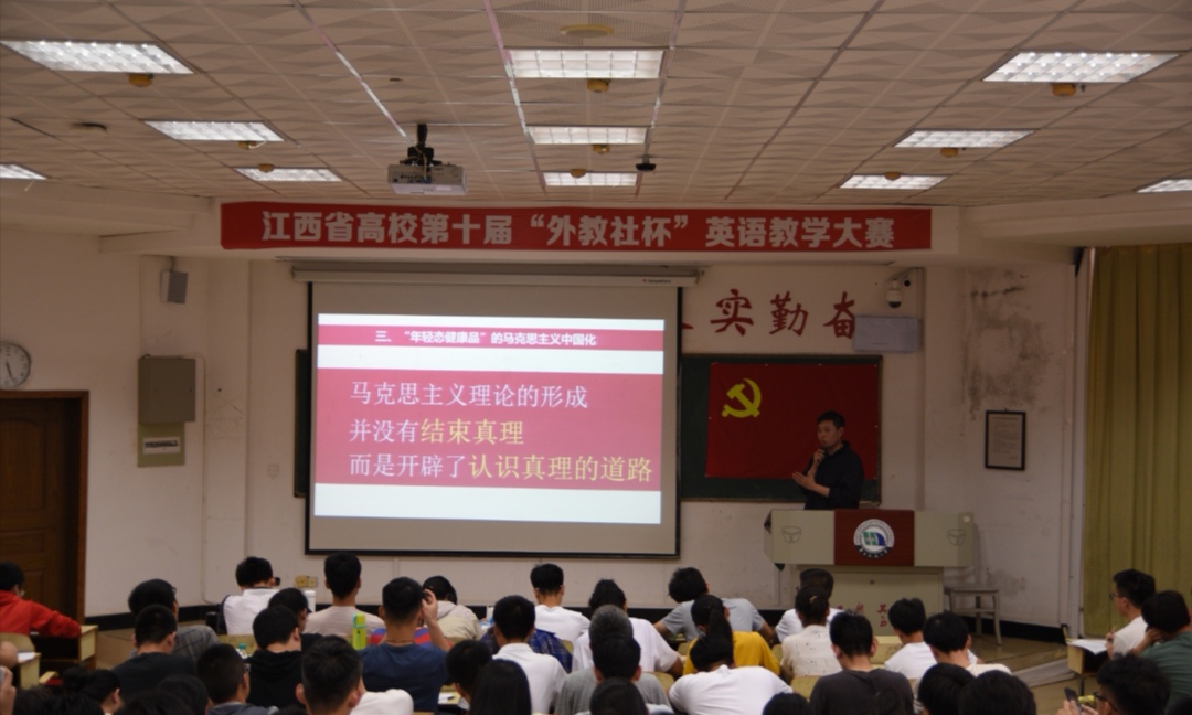 在课堂中18级电气一班平易容同学,用中英文分别为大家朗诵了马克思的著作《青年在选择职业时的考虑》