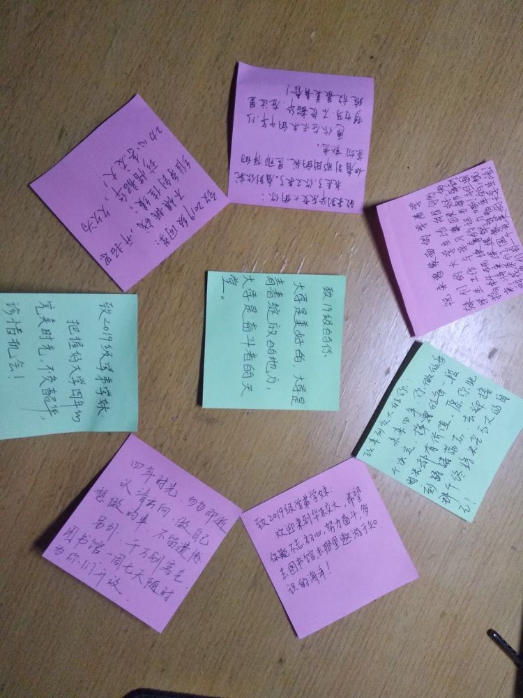本次游学最后一项活动“学长的寄语”,现场的大四员工党员用便利贴为19级学弟学妹写下美好的寄语。
