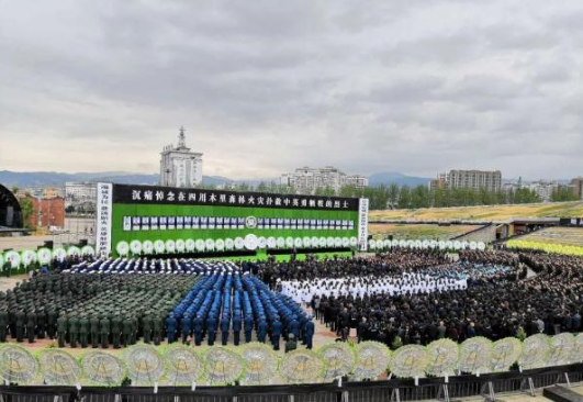 4月4日上午,天空阴沉,气氛一片肃穆。“沉痛悼念在四川木里森林火灾扑救中英勇牺牲烈士”活动在凉山州西昌市举行。一大早,数以万计的市民就聚集到火把广场周围,他们身着黑色衣服,胸戴白花,肩配黑纱,神情肃穆。在前往火把广场的路上,很多西昌市的民众们聚集在街道边,手捧菊花,黑衣肃立。