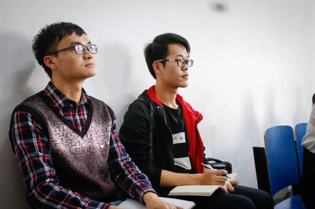 为了避免影响正常上课,员工党员们自行准备了坐凳,并和同伴一道在教室后排落座。