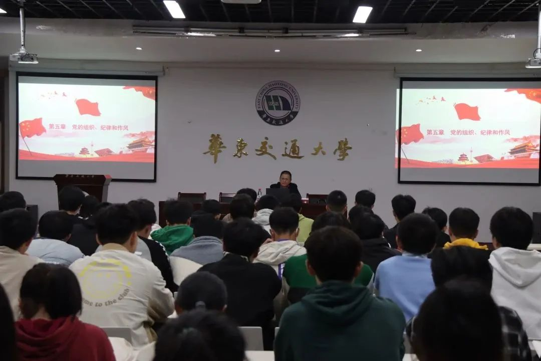 bevictor伟德分党校第44期入党积极分子党课培训班在天佑会堂举行,伟德国际体育官网纪委监督检查室主任李俊老师讲授党课第二讲——党的组织、纪律和作风。