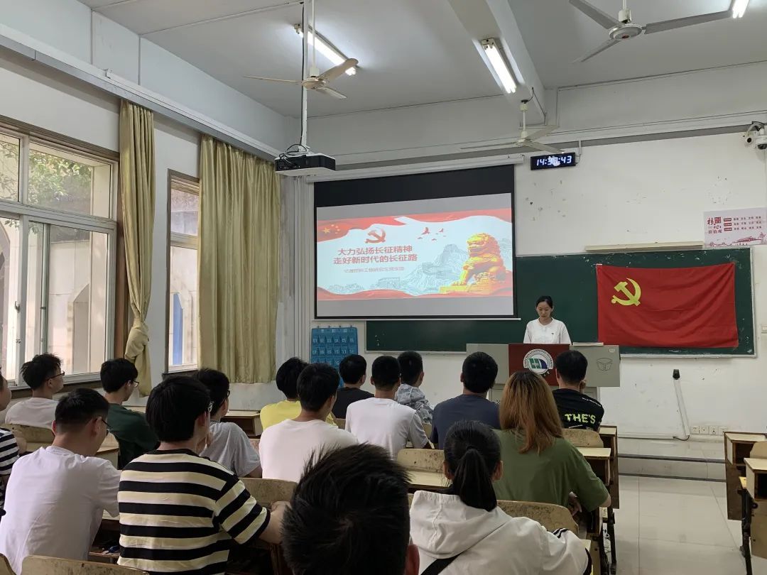 党支部书记柴先琳同志从“长征的历史背景”、“艰苦卓绝的长征”、“伟大的长征精神”和“走好新时代长征路”四个部分带领支部全体党员同志重温了这段辉煌的中国革命史,感受红军展示英勇不屈、永不言弃的奋斗精神和百折不挠的顽强意志。随后柴先琳同志结合宏观的历史背景和支部同志学习实际,对长征和长征精神进行了详细深入地解读,引导支部同志要时刻以革命先辈为榜样,牢记党的光荣传统和优良作风,将长征精神与科研学习生活相结合,不断激励我们勇往直前、锲而不舍,在科研这条道路上不断走向新的胜利。