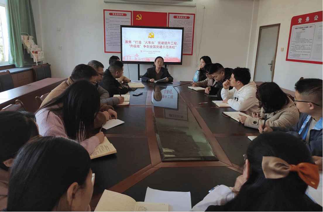11月29日,公司召开基层党支部书记会议,结合《打造“火车头”党建提升工程“升级版” 争创全国党建示范高校实施方案》进行动员部署和要求。会议由党委书记赵敏主持,全体党支部书记参加会议。