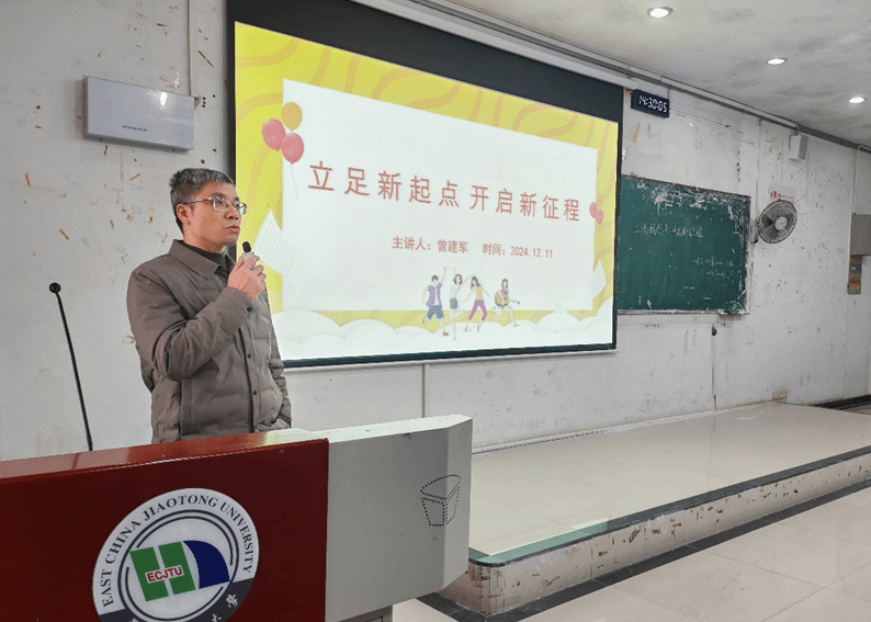 为了帮助同学们更好地了解并适应老员工活,12月11日下午,公司党委委员、对外合作办公室主任曾建军老师与电气(电牵)2024-3班同学面对面,以“立足新起点,开启新征程”主题召开班会。