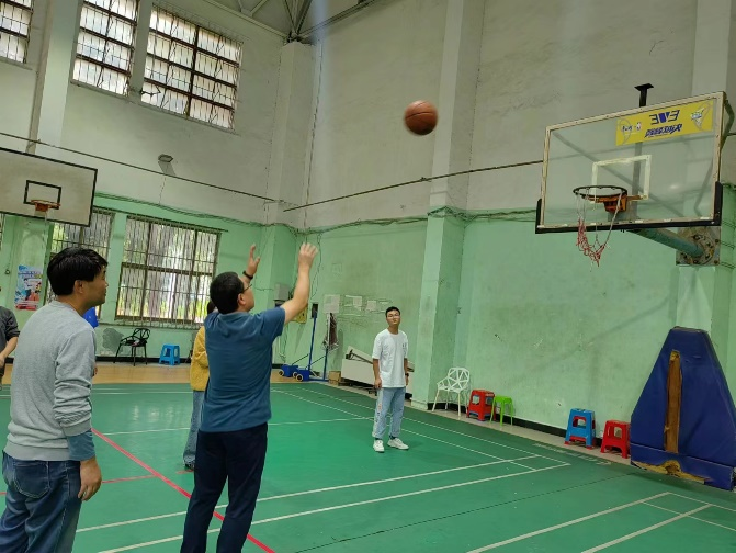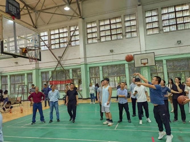 接力投篮环节,每队人按顺序排好队站立罚球投篮线,按3分钟内投中计数,多者胜。这考验的是团队配合和技巧,“传、投、进……”简单动作的连贯展现了老师们的熟练和默契,每一个进球都引起现场阵阵喝声。
