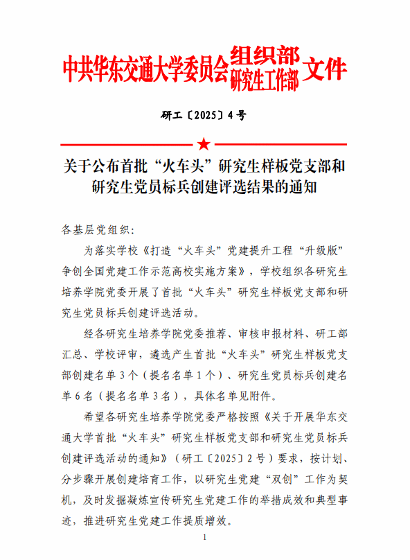 通过公司党委推荐、审核申报材料、研工部汇总、再经公司评审,层层选拔,公司姜志海同志入选研究生党员标兵创建名单,获评研究生党员标兵。